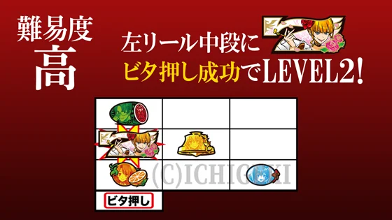 中段にベルが停止した場合は左右どちらかを押して難易度が選択できます。
